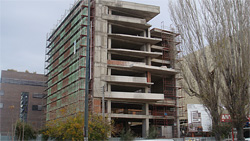 資金難となり建設工事が中断したままのビル(アテネ市内)