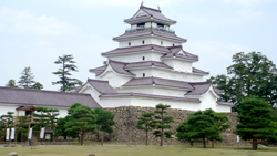 会津若松城(鶴ヶ城):天守閣は昭和40年に再建され、2011年3月に江戸時代の赤瓦葺に復元された。 =筆者撮影